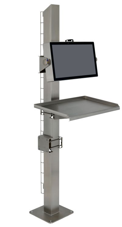 Mit unserem extrem modular aufgebauten Edelstahl-Montagesystem wollen wir gerade beim Einsatz im hygienesensitiven Umfeld den perfekten Kompromiss ermöglichen und alle notwendigen Komponenten, wie z.B. der Rückmeldepunkt, Drucker usw. sicher und ergonomisch gut unterbringen.