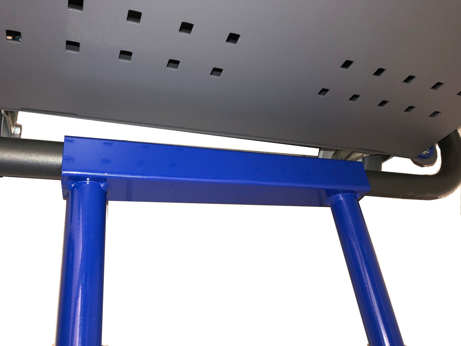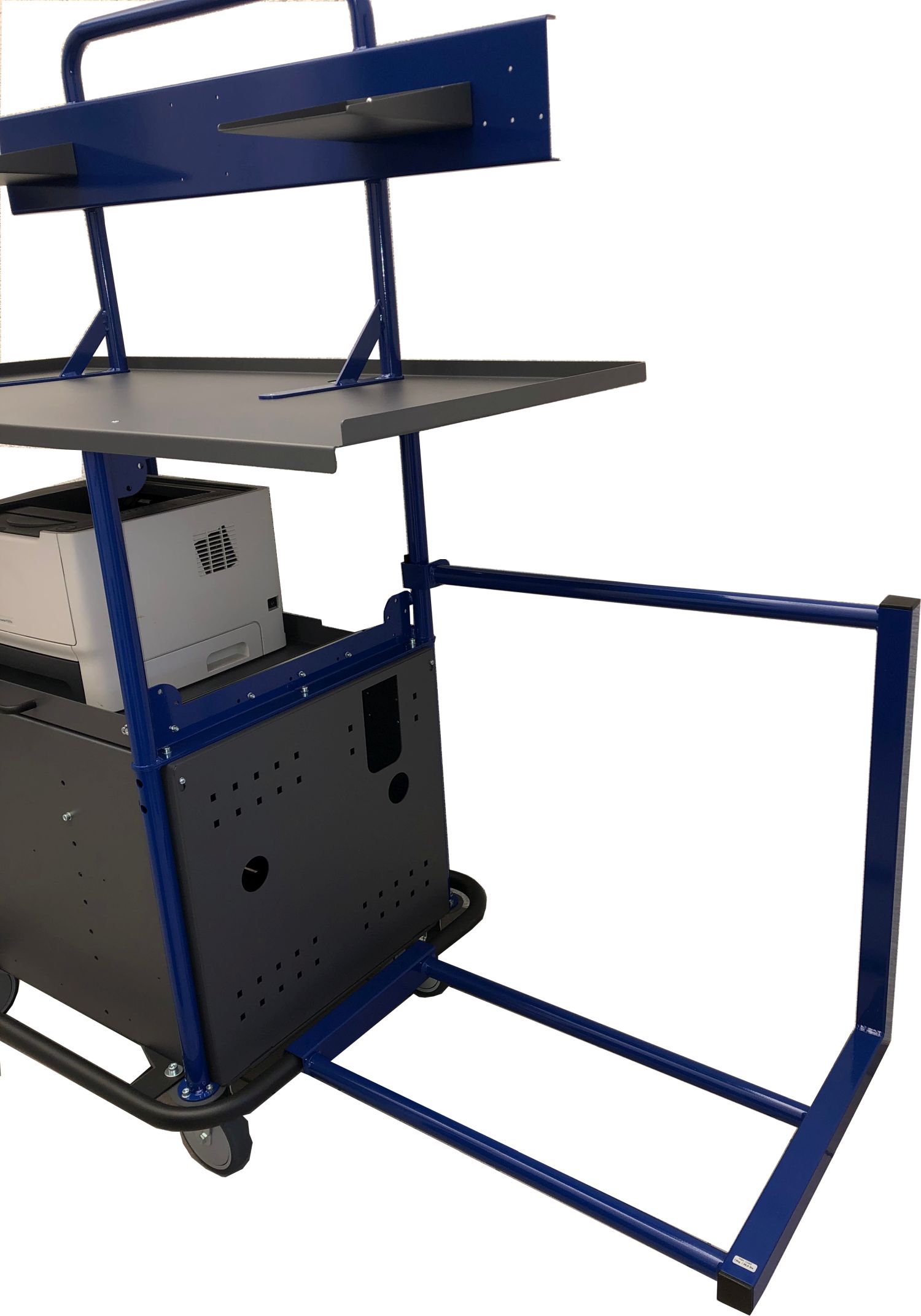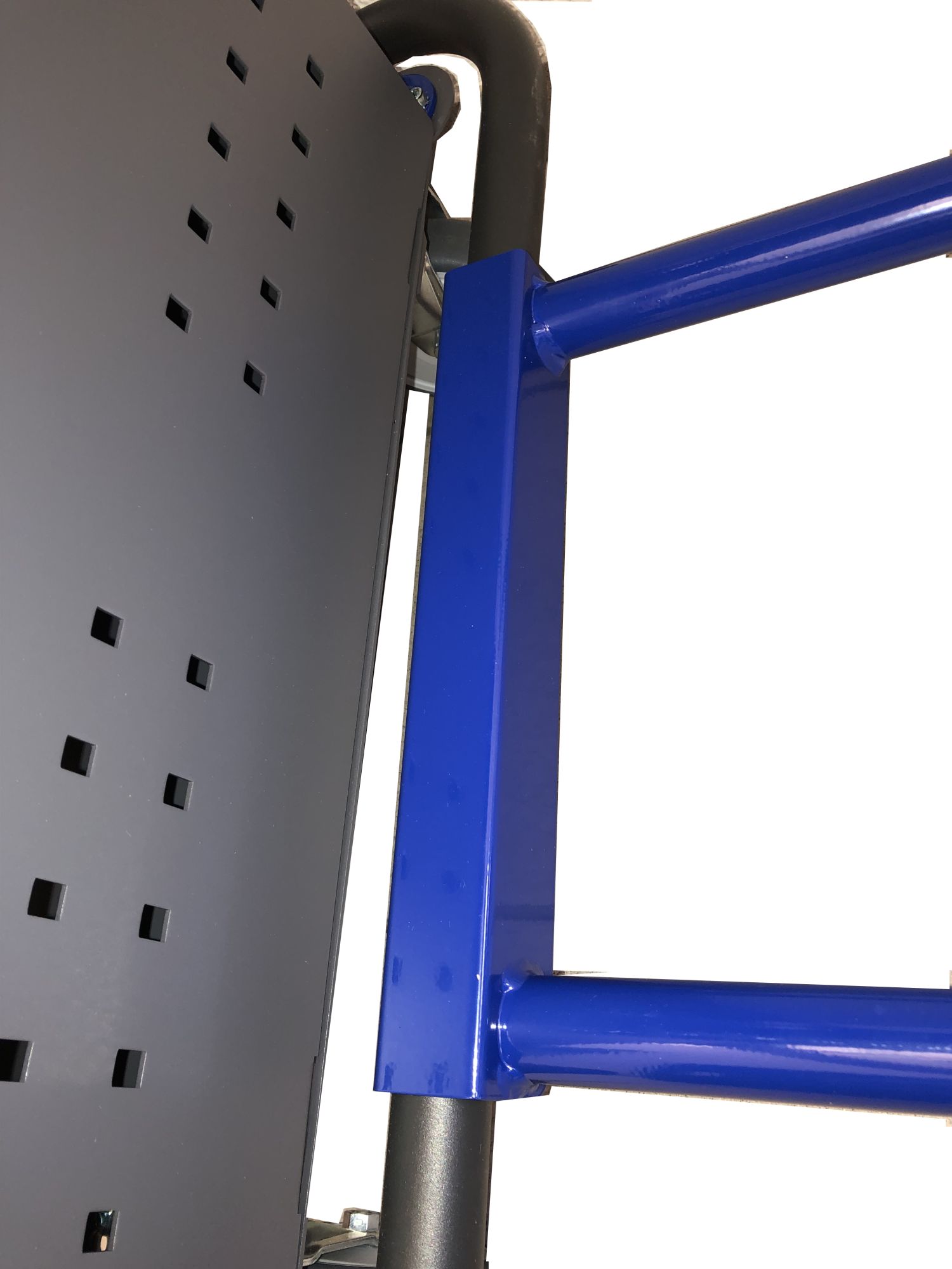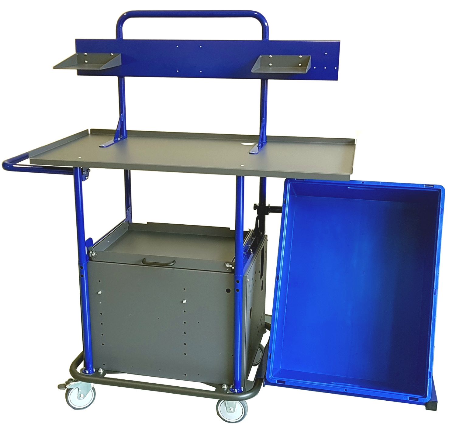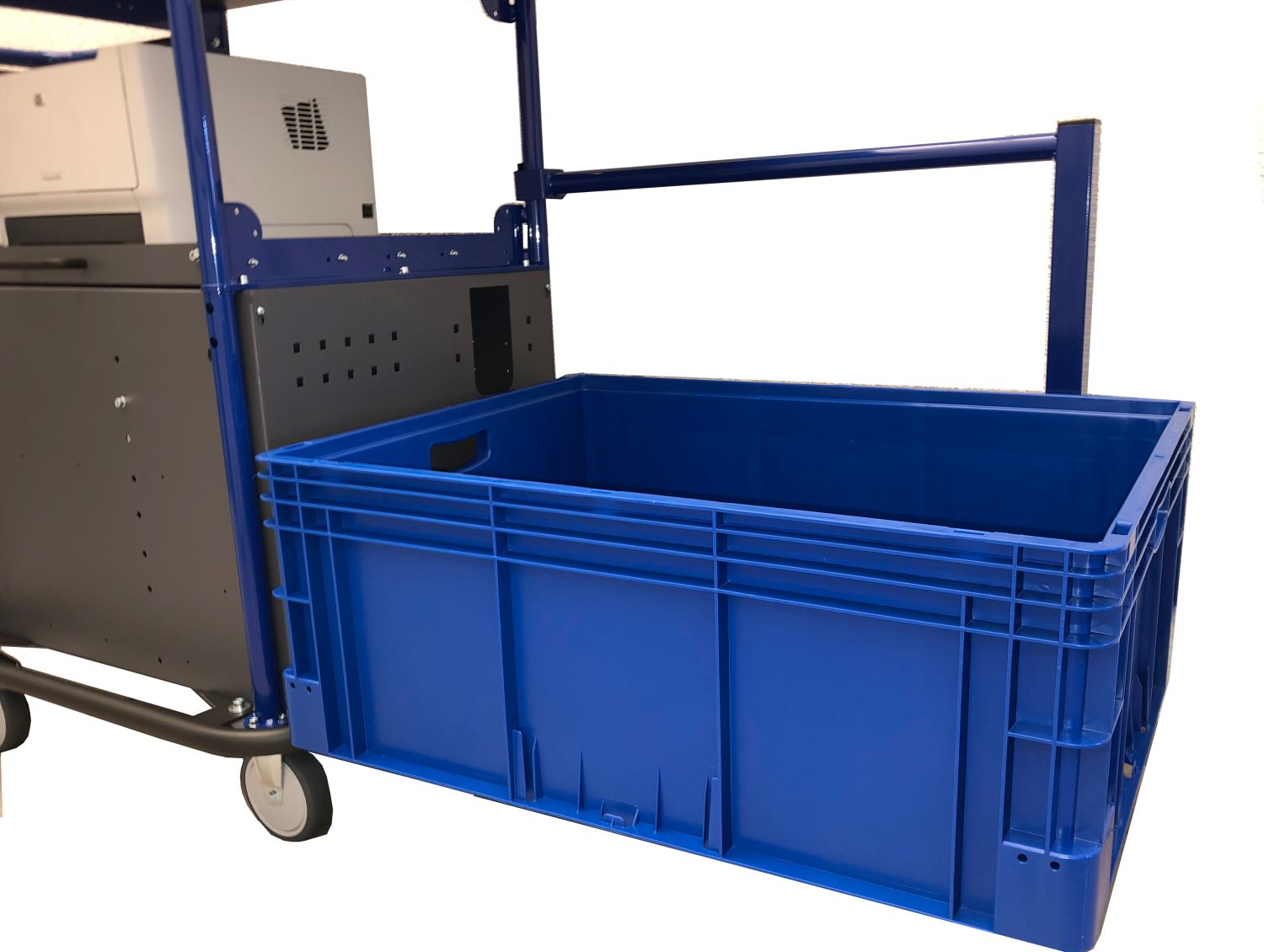 Een speciaal buisframe maakt de bevestiging van deze box aan het mobiele werkstation mogelijk.