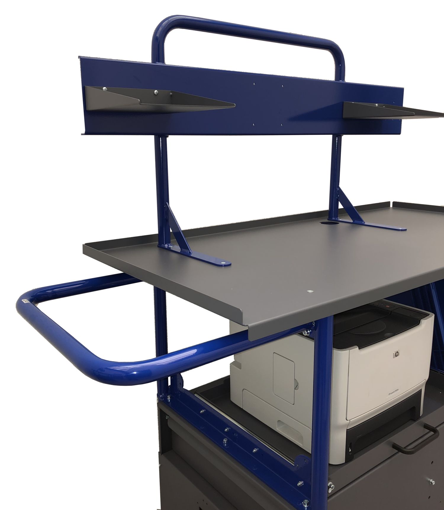 Die Montagehalterung bietet die Lösung. Mit diesem Zubehör für mobile Arbeitsplätze können Geräte, die sonst auf der Ablagefläche stehen würden, auf der Halterung befestigt werden.