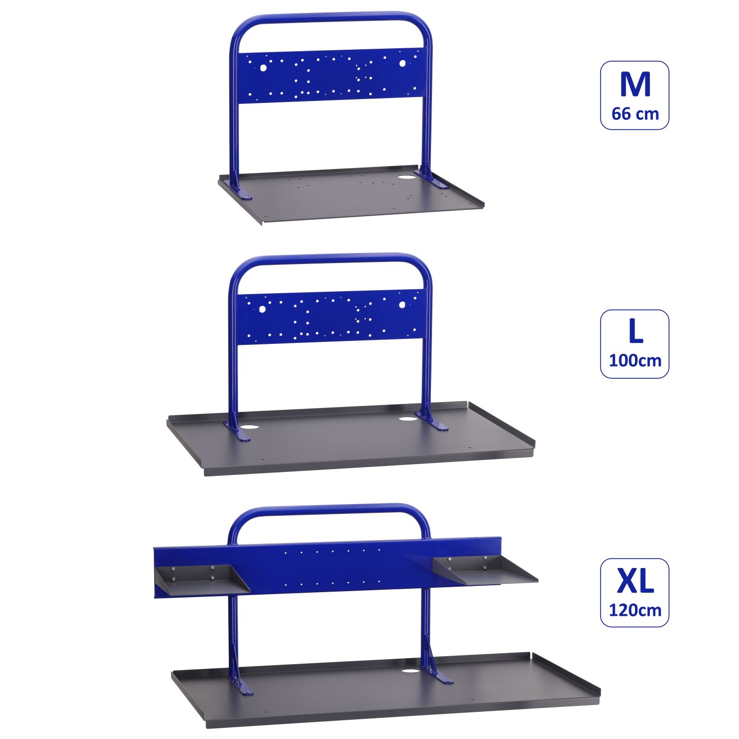 Prinzipiell lassen sich alle mobilen Arbeitsstationen mit der Montagehalterung ausstatten. Die Montage erfolgt über die Befestigungspunkte der Arbeitsplatte. Die Montagehalterungen sind ab Gehäusetyp M verfügbar.
