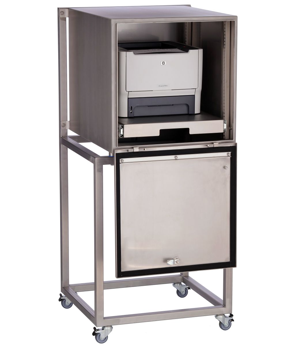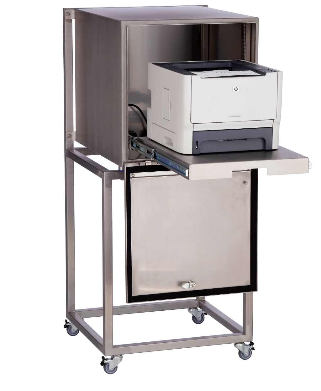 - Praktischer Stauraum für Drucker in hygienekritischen Umgebungen
